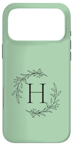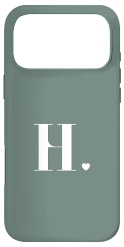 Monogramme Vert Sauge avec Lettre H Initiale en Forme de cœur Coque pour iPhone 17 Pro Max