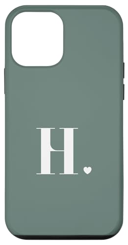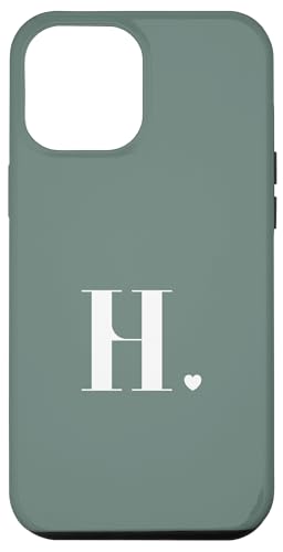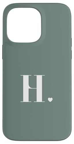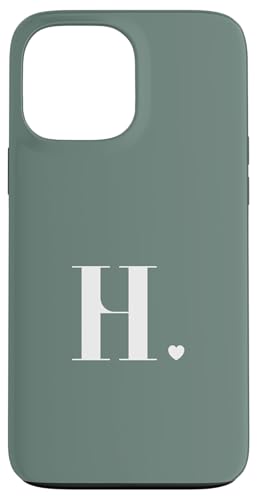 Monogramme Vert Sauge avec Lettre H Initiale en Forme de cœur Coque pour iPhone 13 Pro Max