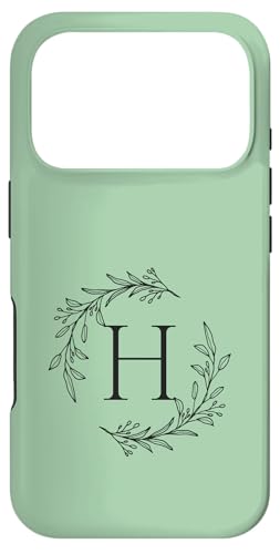 Monogramme Vert Sauge avec Lettre H Initiale en Forme de cœur Coque pour iPhone 16 Pro