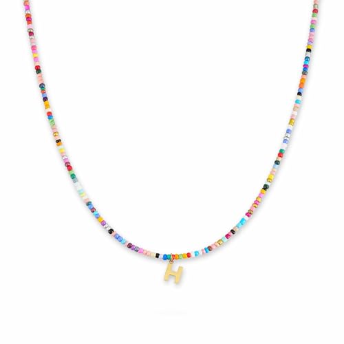 GD GOOD.designs collier perlé coloré pour femme | Chaîne résistante à l’eau avec lettre H | Pendentif initiale en acier inoxydable plaqué or 18K | Longueur réglable et douce pour la peau (40–45 cm)