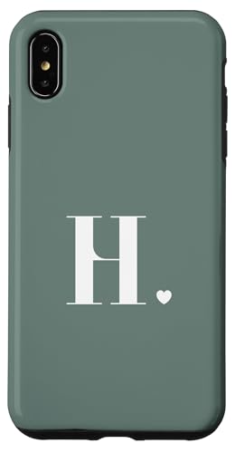 Monogramme Vert Sauge avec Lettre H Initiale en Forme de cœur Coque pour iPhone XS Max