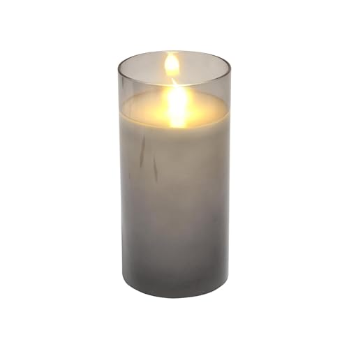 Homéa, Bougie LED Verrine Verre Gris Clair Cire Blanc D7,5 x H15 cm Blanc Chaud