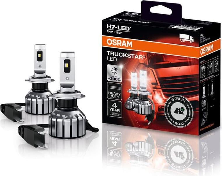 Osram TRUCKSTAR LED H7, feux de route et de croisement pour poids lourds, homologués pour la route, 24V, jusqu'à 230% de luminosité en plus, blanc