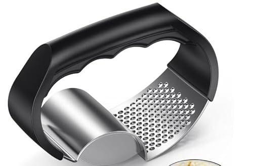 elzle Presse Ail Inox Professionnelle,2 en 1 Hachoir Manuel en AcieAr, Hachoir à Ail Broyeur de Gingembre Presse-ail à Bascule pour Ail Gingembre Purée