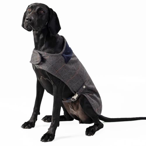 HUGO & HUDSON x Hackett Veste pour Chien en Tweed avec col en Velours côtelé, Gris à Carreaux XS25
