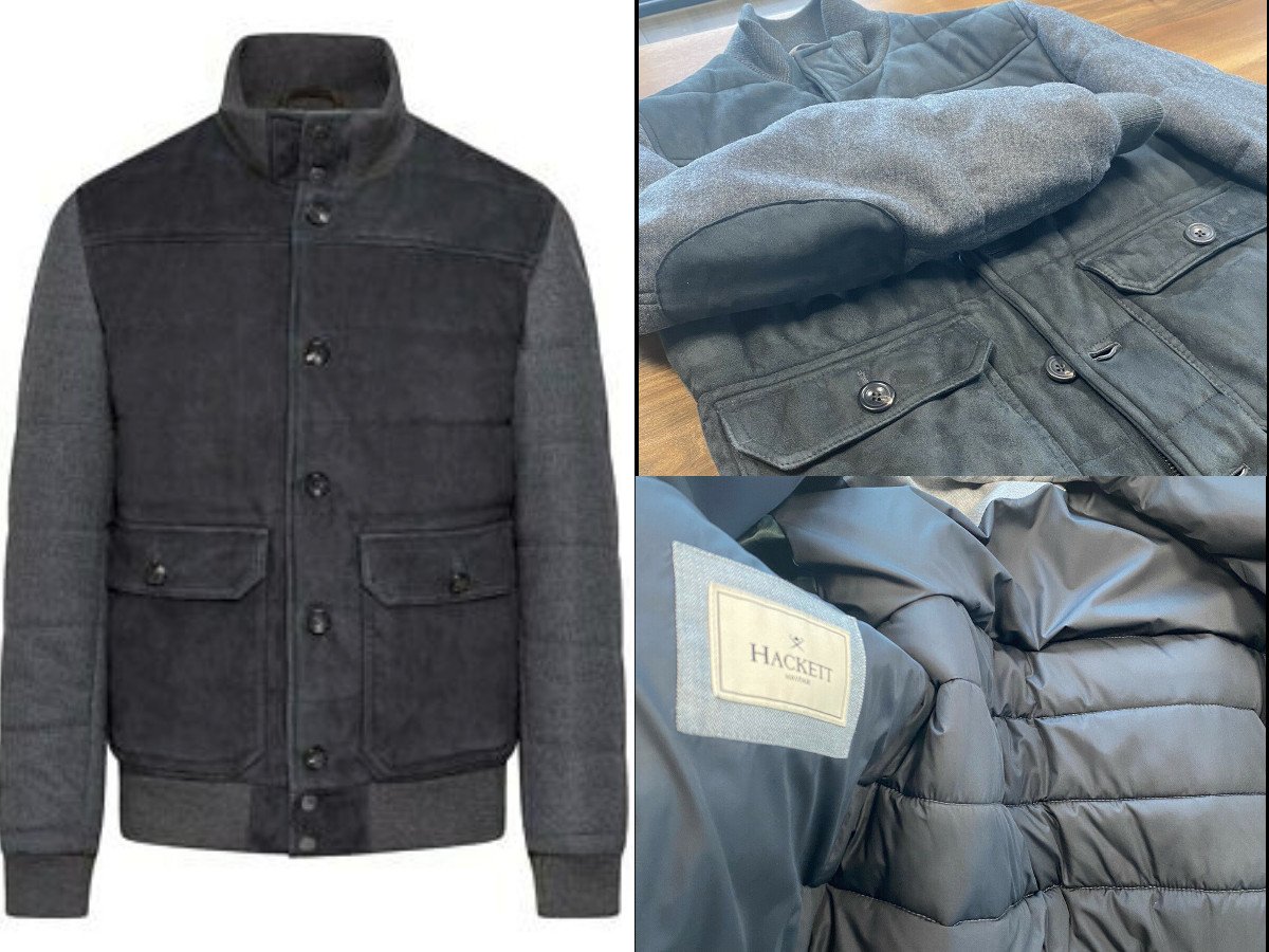 Hackett London Mayfair Rembourré Daim Veste Cuir Bomber jacke Blouson XS