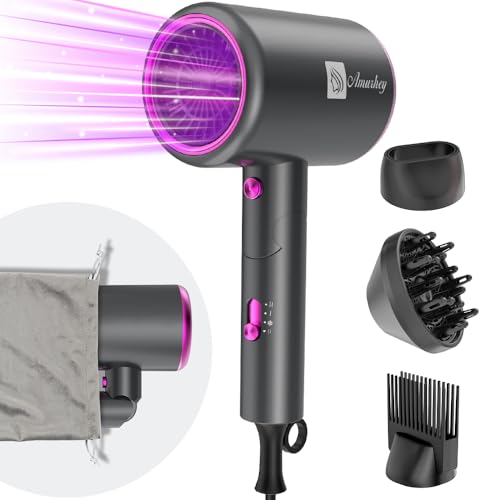 Sèche-cheveux Ionique 2400W avec Pochette, [Léger, Haute Vitesse & Pliable] Set de Coiffure avec Concentrateur/Diffuseur/Peigne Volume, Hair Dryer à température constante (Gris)