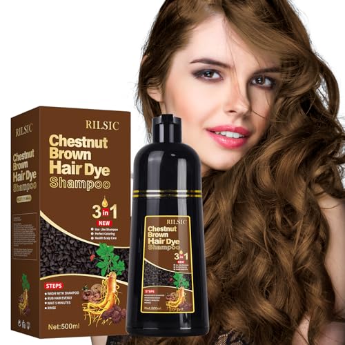 Shampoing Colorant,Shampoing Cheveux Colorés Instantanée, Hair Dye Shampoo 3 en 1,Hair Color Teinture Cheveux Shampooing Colorant Cheveux Blancs,Coloration Cheveux En Minutes (Marron Châtaigne)