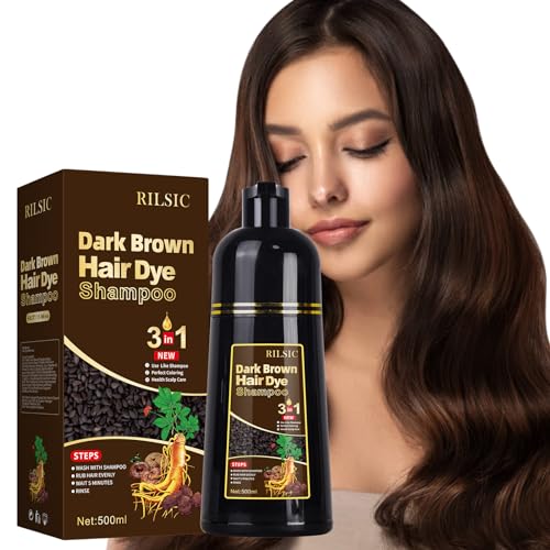 Shampoing Colorant, 500ml Naturelle Shampooing Tcheveux colorés, Dark Brown Hair Dye Shampoo 3 in 1, Shampoing Cheveux Blanc Instantanée,Coloration Chatain Foncé, Teinture Femme Homme (Chatain Foncé)