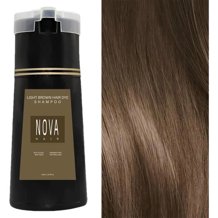 200ML Nova Hair Dye Shampoo Shampoing Colorant Teinture Cheveux Homme Femme Shampoing Colorant Naturel Cheveux Blancs (Brown)