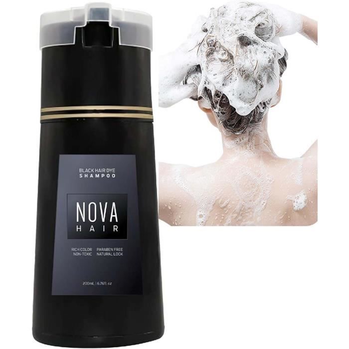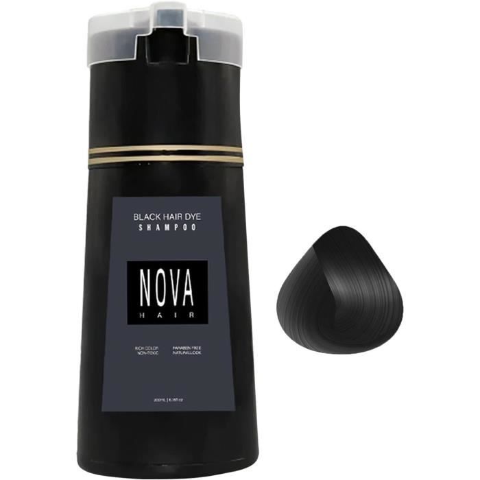 Nova Hair Dye Shampoo Shampoing Colorant Teinture Cheveux Homme Femme Shampoing Colorant Naturel Cheveux Blancs 200ML (Black)