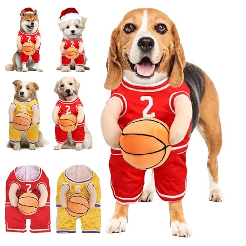 Dog Basketball Jersey with Ball Costume, Adjustable Straps, Dog Referee Costume, Halloween Costumes for Dogs (Red, S)