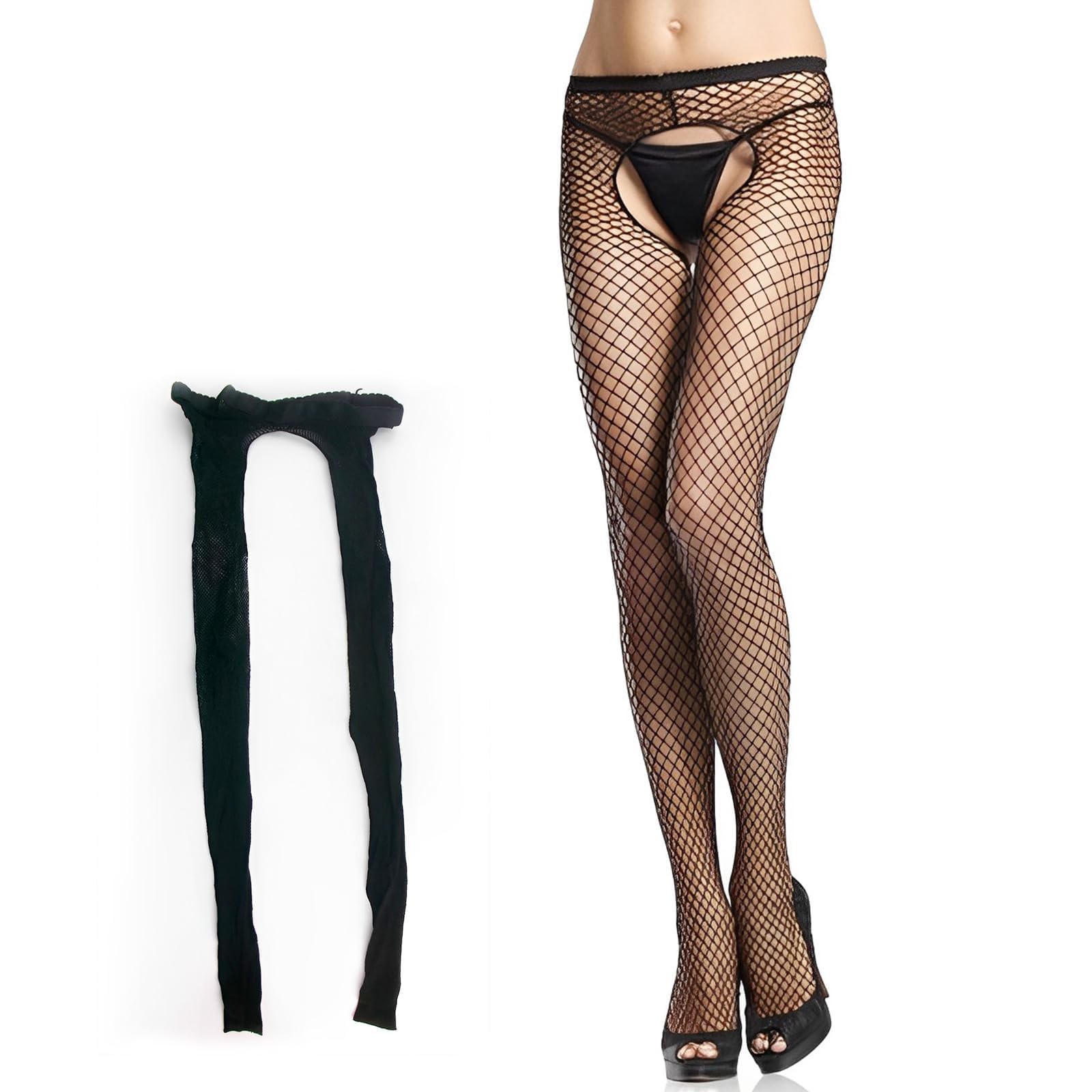 Collants Résille Femme Halloween Sexy Noir - Bas Fishnet Long pour Boîte de N...