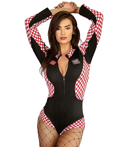 Beauty's Love Red and White Checkered Halloween Sexy Racer Costume - Racer Car Driver Ricky Bobby Costume Woman (Medium)