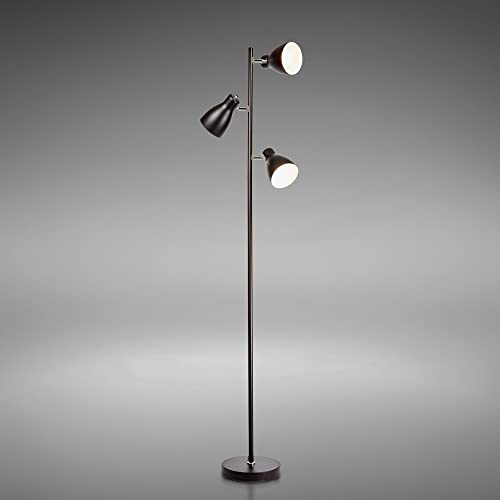 B.K.Licht lampadaire LED vintage, lampe à pied design rétro, 3 spots orientables, ampoules E27 LED ou halogène, hauteur 166,5 cm, métal noir blanc