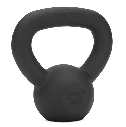 XTREXO Kettlebell en fonte avec fond plat, poignée revêtue de poudre, haltère d'inertie pour musculation, crossfit, gym à la maison, 4 kg