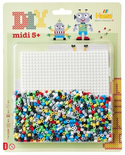 HAMA – Blister perles à repasser robot – 1100 perles midi 5 mm – Plaque carrée, modèles et papier – Loisirs créatifs enfants dès 5 ans