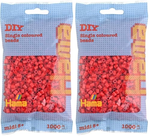 HAMA - sachet de perles à repasser | env. 1000 perles midi | loisirs créatifs et mosaïques pour enfants dès 5 ans | jeu créatif et décoration artisanale | Red (Lot de 2)