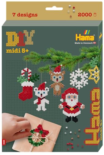 Hama – Coffret Perles à Repasser déco Noël – 2000 Perles midi 5 mm – Plaque hexagonale, modèles et Papier – Loisirs créatifs Enfants dès 5 Ans