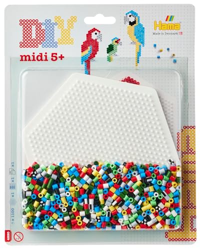 Hama – Blister Perles à Repasser Perroquet – 1100 Perles midi 5 mm – Plaque hexagonale, modèles et Papier – Loisirs créatifs Enfants dès 5 Ans