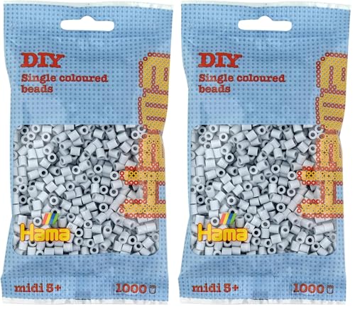 HAMA - sachet de perles à repasser | env. 1000 perles midi | loisirs créatifs et mosaïques pour enfants dès 5 ans | jeu créatif et décoration artisanale | Light grey (Lot de 2)