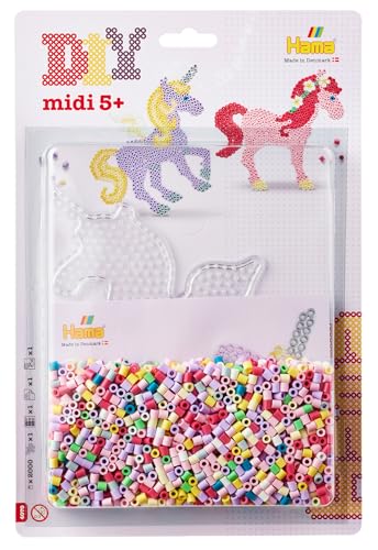 Hama – Blister Perles à Repasser Chevaux Magiques – 2000 Perles midi 5 mm – Plaque Licorne, modèles et Papier – Loisirs créatifs Enfants dès 5 Ans