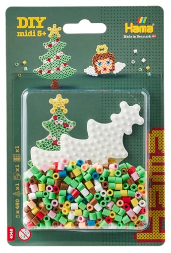 HAMA – Blister perles à repasser Noël – 450 perles midi 5 mm – Plaque sapin ange, modèles et papier – Loisirs créatifs enfants dès 5 ans
