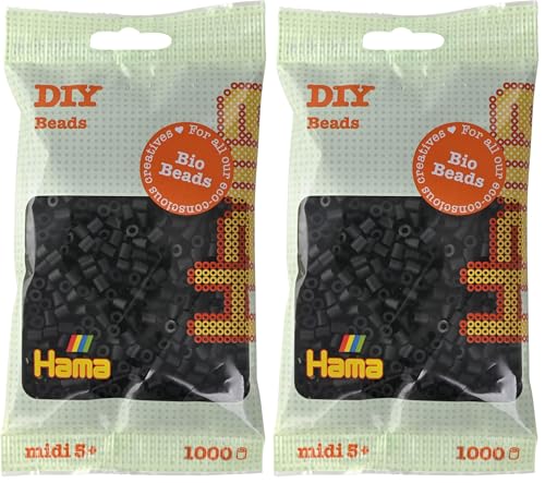 HAMA - sachet de perles à repasser bio midi | env. 1000 perles | loisirs créatifs et mosaïques pour enfants dès 5 ans | jeu créatif durable et décoration artisanale | Black (Lot de 2)