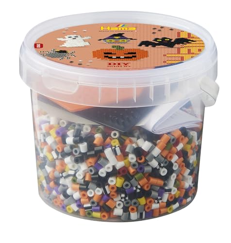 Hama – Pot Perles à Repasser Halloween – 4000 Perles midi 5 mm – 2 plaques carrée et hexagonale – Modèles Instructions Papier – Loisirs créatifs Enfants dès 5 Ans