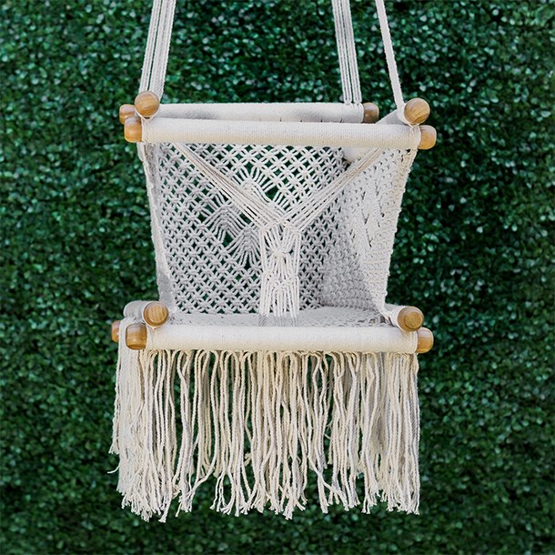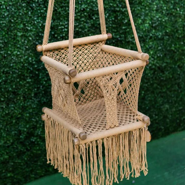 CaTeam - Hamac pour bébé en Toile, Chaise Suspendue en Bois avec Ceinture de sécurité, Chaise hamac Durable pour bébé, balançoire extérieure et intérieure pour Enfants, Ivoire