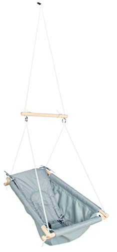 CaTeam - Hamac pour bébé en Toile, Chaise Suspendue en Bois avec Ceinture de sécurité, Chaise hamac Durable pour bébé, balançoire extérieure et intérieure pour Enfants, Grise