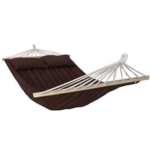 BB Sport Hamac Double Suspendu Barre Deux Personnes Surface Couchage 240 x 150 cm Charge Max. 300 kg, Couleur:Chocolat