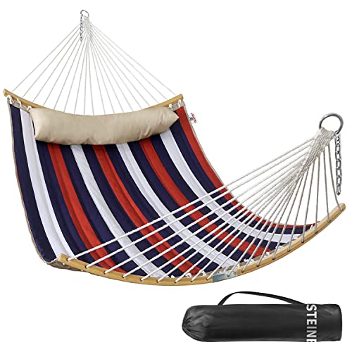 Bathonly Hamac Double, Hamac 2 Personnes en Tissu Matelassé De 335 cm pour l'Extérieur avec Oreiller, Barre d'écartement Incurvée Pliable, Chaînes, Sac de Transport, Capacité de 204 Kg, Trinidad Red