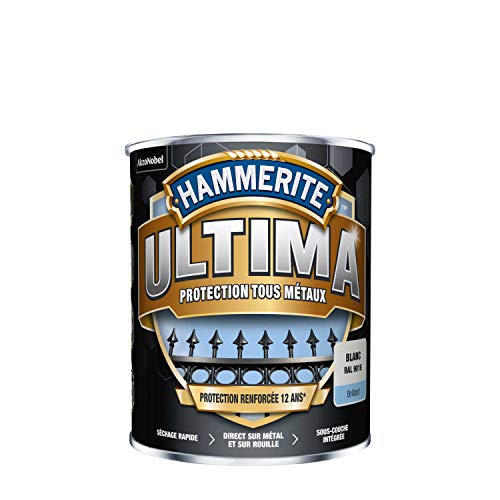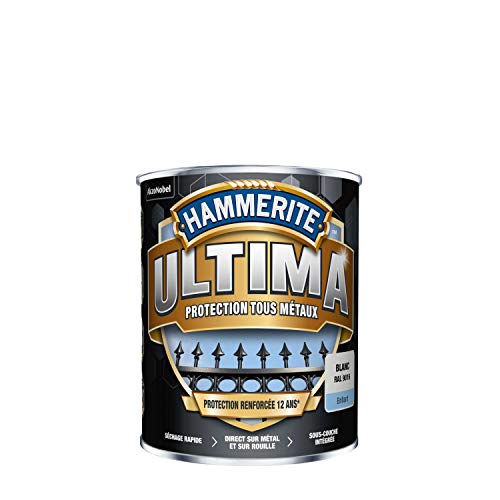 Hammerite Ultima - Peinture Acrylique Tous Métaux - 3 en 1 : Antirouille, Direct sur Rouille et Sans Sous-couche - Brillant Blanc 0,75 L