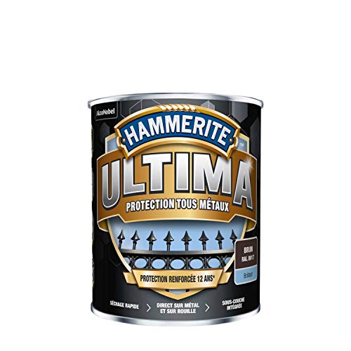 Hammerite Ultima - Peinture Acrylique Tous Métaux - 3 en 1 : Antirouille, Direct sur Rouille et Sans Sous-couche - Brillant Brun 0,75 L