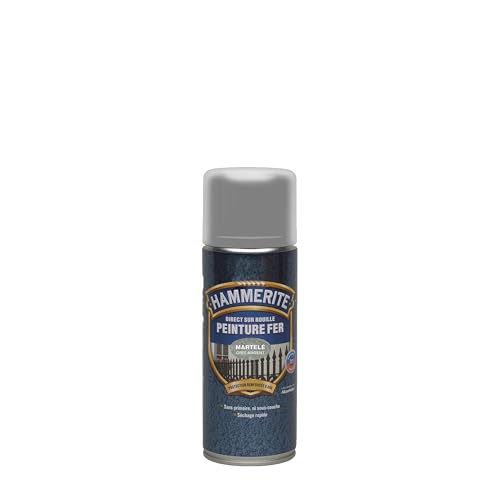 Hammerite - Peinture aérosol Antirouille - Application Direct sur Rouille - Protection Métal Extérieur - Séchage rapide et finition durable - Gris Argent Martelé 400ml