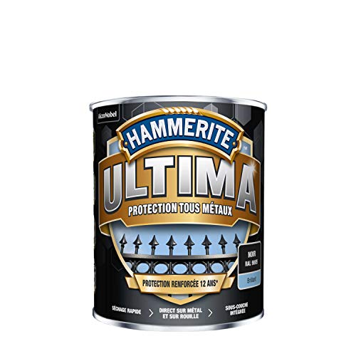 Hammerite Ultima - Peinture Acrylique Tous Métaux - 3 en 1 : Antirouille, Direct sur Rouille et Sans Sous-couche - Brillant Noir 0,75 L