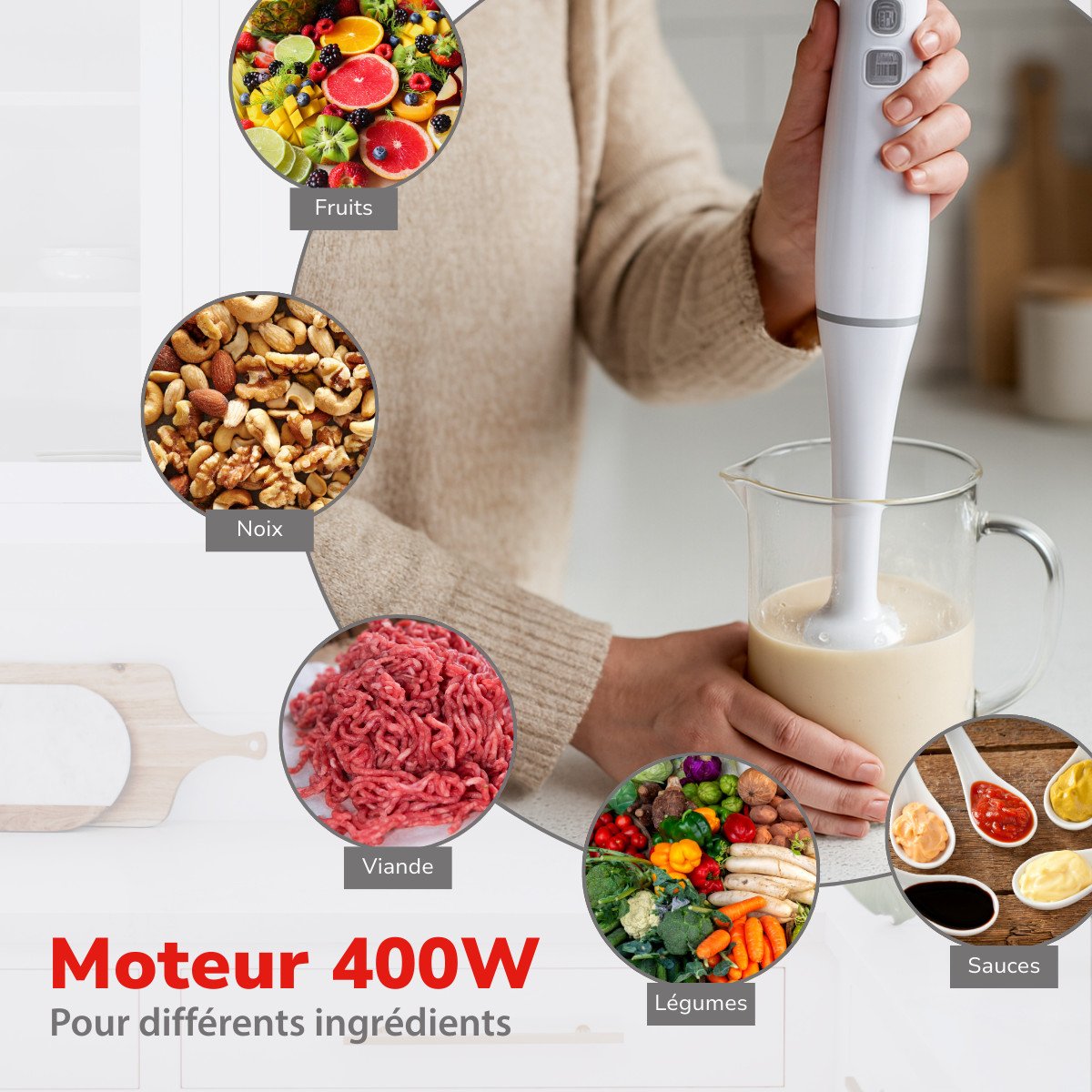 alpina Mixeur Plongeant pour Cuisine 400W - Hand Blender avec Fonction Turbo et