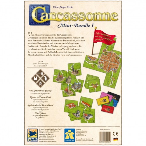 Hans im Glück Carcassonne - Auberges et Cathédrales (édition 2025), 1ère Extension, Jeu Familial, 2-6 Joueurs, 7+ Ans, 45 Minutes, Allemand