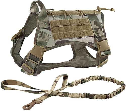 Forestpaw Harnais tactique pour chiens de grande taille, collier tactique pour chien avec laisse élastique, harnais militaire anti-traction pour la marche et le dressage, réglable pour chiens de