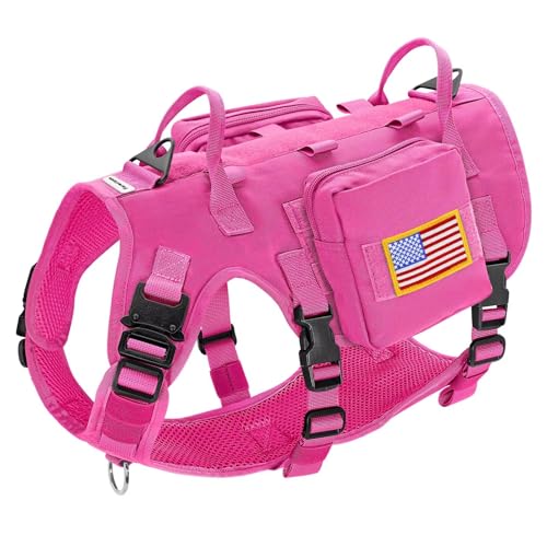 Forestpaw Harnais Tactique pour Chien de Taille Moyenne avec poignée, Gilet Anti-Traction de Style Militaire avec Poches réglables pour Chiens de Moyenne et Grande Taille, Rose Vif, Poitrine 54,6 à