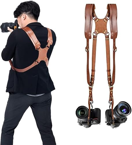 Focket Courroie d'appareil Photo pour Deux caméras, Harnais en Cuir Confortable, Harnais de Courroie d'appareil Photo, Accessoires d'appareil Photo, équipement Multi caméra pour la courro