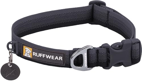RUFFWEAR Collier pour Chien Front Range, Sangle Tubelok résistante, Anneau de Fixation en Aluminium et Boucle à Ouverture latérale, élégant et Durable Basalt Gray 14"-20"