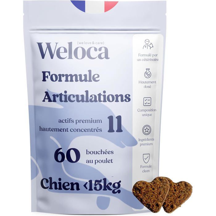 Complément Articulations chien - 60 bouchées - 11 actifs puissants (dont glucosamine chondroïtine moule verte harpagophytum)