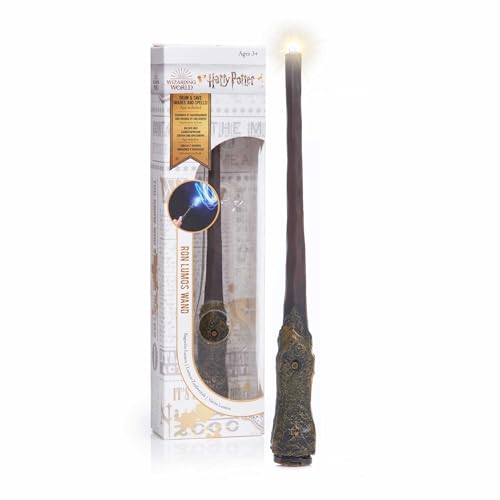 Famosa Harry Potter, Baguette Magique Rhum 18 cm avec Pointe Lumineuse, Active Le Bouton du Manche pour Lancer des Sorts, idéale pour Les Duels, Compatible avec App Light Painting Jour et Nuit