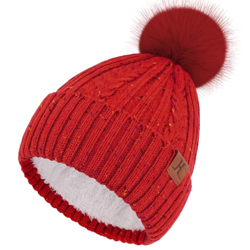 Bequemer Laden Bonnet Hiver Femme - Bonnets Chauds Tricotés avec Double Doublure Polaire, Mignons Pompon Cadeau Femme