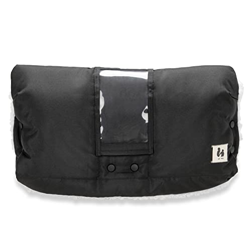 hauck Protege Main Poussette, Landau et Remorque Velo - Moufle Poussette avec Poche Téléphone Portable Écran Tactile, en Doux Polaire Peluche, Imperméable, Facile à Fixer - Noir