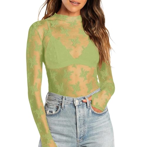 T-shirt à manches longues pour femme - Haut élégant - Sexy - Dentelle - Noir - Manches longues - Body sexy - Tenue de festival - Tenue Techno - Transparent - Manches longues