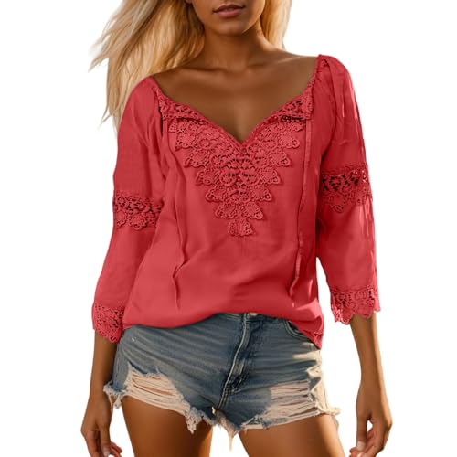 Bastwahl Haut en Dentelle Noir Femme Sexy à Manches Longues en Maille Élégant Chic Transparent Blouse Haut Florale Col V Casual Mode avec Superposition Tunique Tee Shirt pour Clubwear Et Fête