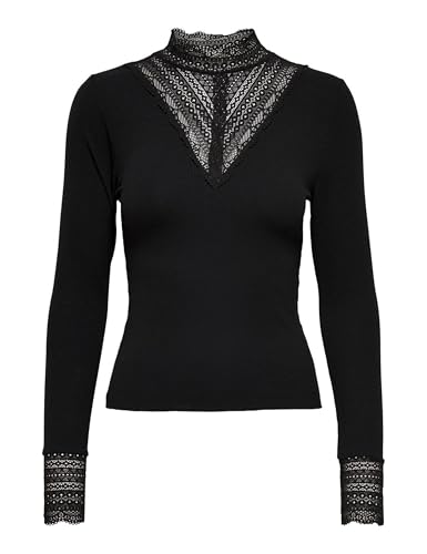 Only Femme Onltilde L/S Haut Col en Dentelle Jrs Noos T shirt manches longues, Noir/Détails : Dentelle Noire., L EU